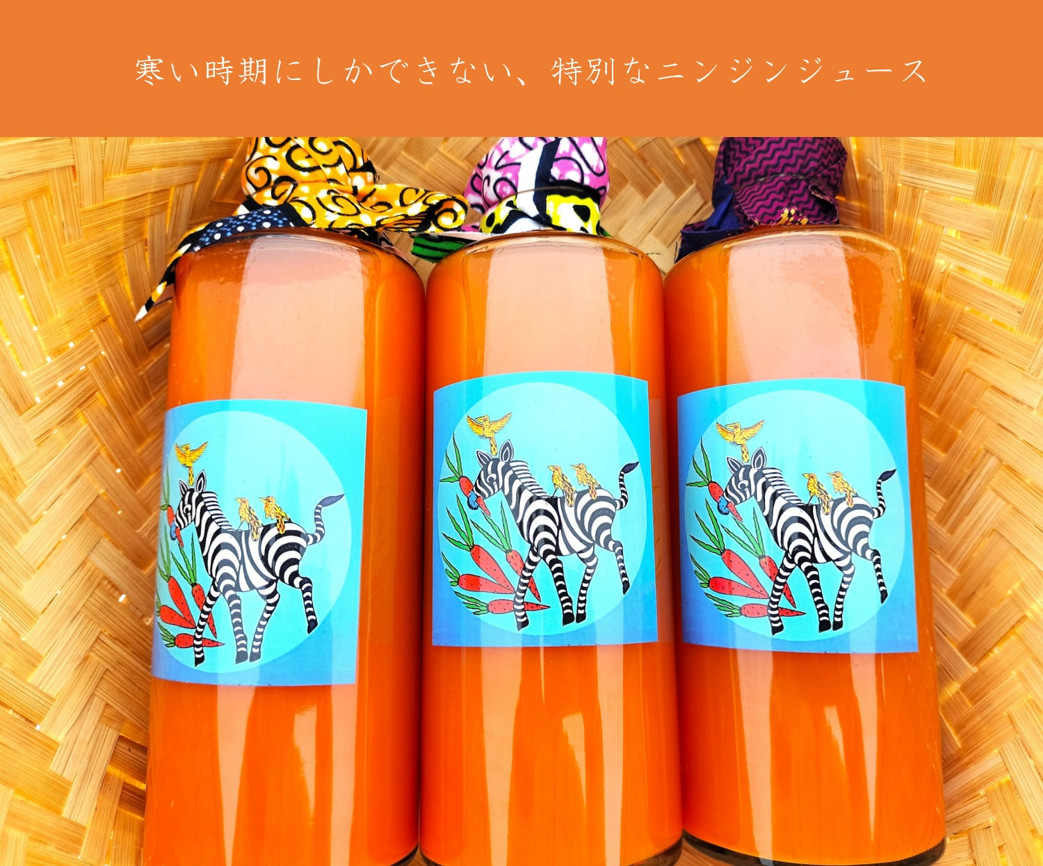 ニンジンの品種は『アロマレッド』。フルーティな甘さと香りが特徴で、ニンジン特有の臭みが全く無い美味しいニンジンを使っています。